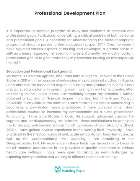 Read professional development plan nursing essay PDF